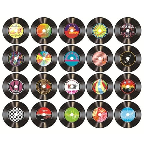 20 adesivos de disco de vinil, adesivos estéticos de disco de CD, decalque de parede de arte criativa para discoteca, aniversário, música, festa temática (Discos de Vinil)