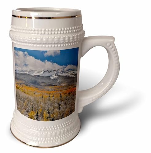 3dRose Autumn Aspens and snow on Keebler Pass, Rocky Mountains, Colorado – Caneca Stein, 530 ml, 640 ml, branca (Cervejas)