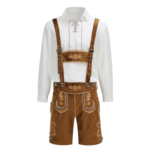 AGCOAH Fantasia masculina da Oktoberfest bávara alemã, fantasia de Halloween para homens, fantasia de Lederhosen, 2 peças, Octoberfest com calças curtas de tiras (branco-G) (Cervejas)