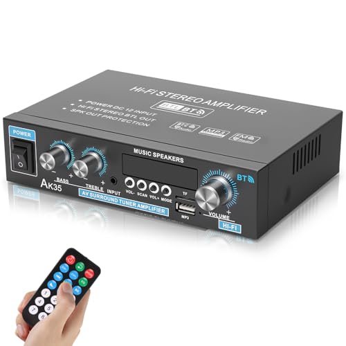 Amplificador de Som, 90W + 90W Mini Amplificador Digital, Amplificador de Alta Potência de 2 Canais, Suporte para Cartão TF, Interface AUX, Disco U e Reprodução de MP3, Suporte para Ligação Bluetooth (Equipamentos)