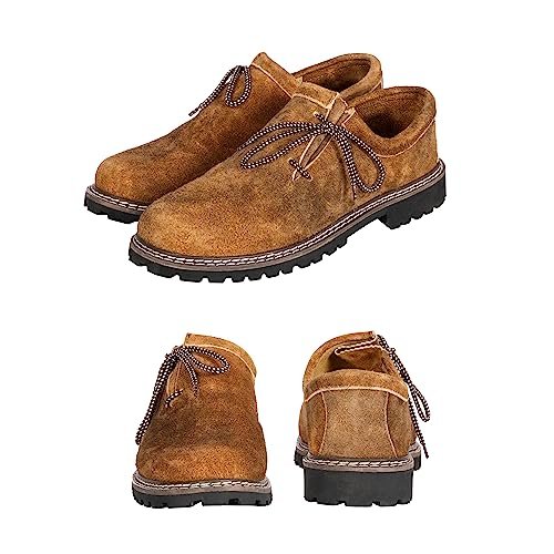 BAVARIA TRACHTEN Botas Lederhosen – Haferl Authentic German Shoe for Oktoberfest Outfit – Couro verdadeiro marrom escuro, Oliva, 38 (Cervejas)