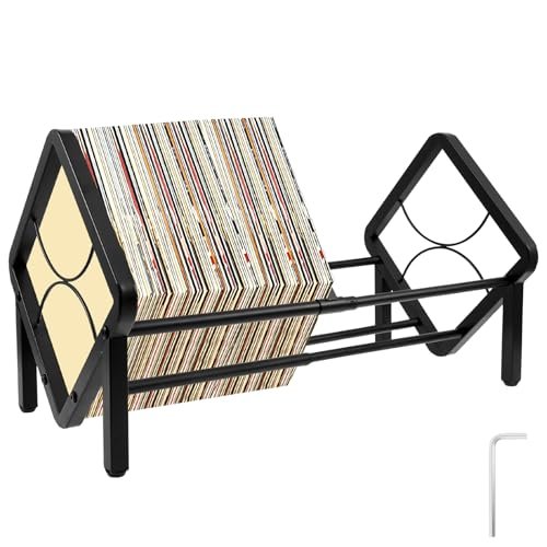 bigjvbfv Suporte de disco de vinil, comprimento ajustável, suporte vertical de aço carbono, exibição de disco de vinil, suporte organizador de discos, rack de armazenamento LP de camada dupla para (Equipamentos)