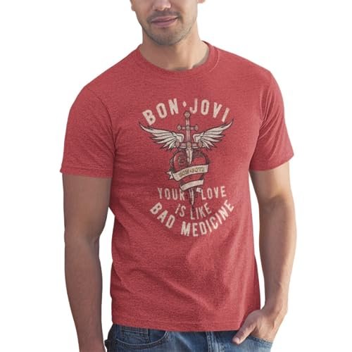 Camiseta adulta Bon Jovi 1983 American Rock Band Bad Medicine vermelha mesclada, Urze vermelho, GG (Camisetas)