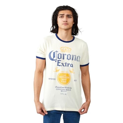 Camiseta masculina com gola redonda e manga curta Corona Extra Label, Off-white, P (Cervejas)