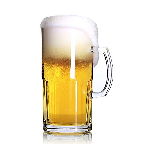 Caneca de cerveja grande estilosa de 86,3 g, canecas de vidro grande com alça, caneca de cerveja alemã de um litro Super Caneca, Clear, 34 oz (Cervejas)