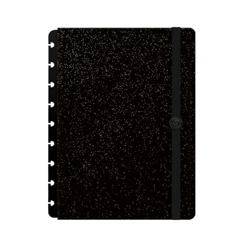 Capa e Contracapa Iscool Disc Para Caderno M Solid Glitter Preto (Discos de Vinil)