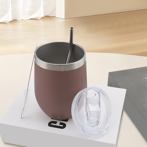 Copo de vinho isolado de 340 g com tampa e canudo, copos sem haste de aço inoxidável de parede dupla com tampas, copos de vinho, presente para família e presentes, prêmios para adultos (champanhe) (Vinhos)