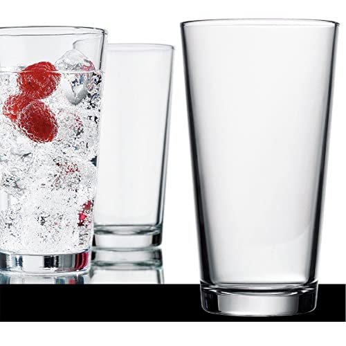 Copos de cerveja premium clássicos de 473 ml vidro temperado para mistura de cerveja, conjunto de 4, com porta-copos, perfeitos para coquetéis, bebidas frias, água, refrigerante (Cervejas)