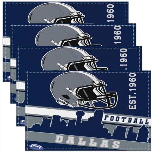 Erosebridal Jogo americano Football City, 4 peças, 30,5 x 45,7 cm, tapetes de mesa de futebol americano, para meninos e meninas, azul, rúgbi, para fãs de futebol, jogo americano de competição (Dallas) (CDs)