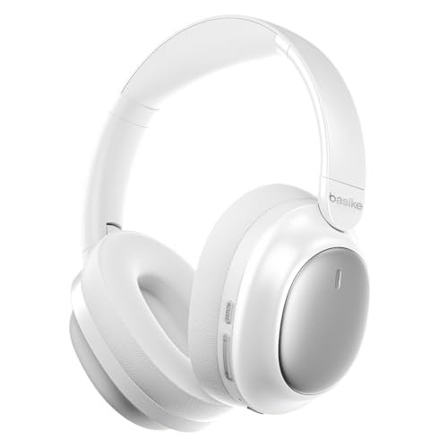 Fone de Ouvido Bluetooth 5.4 com ANC, Basike Headphone Design Dobrável e Som 3D Estéreo, com Fio e Sem Fio Universal, Resistente à Água IPX5, para Academia e Viagens 30 Horas Reprodução(Branco) (Equipamentos)