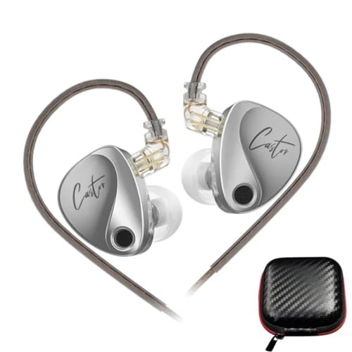 Fone de ouvido Castor – Tuning ajustável, driver duplo, HiFi intra-auricular, monitor, com cancelamento de ruído, com cabo removível e case de proteção (Silver) (Equipamentos)