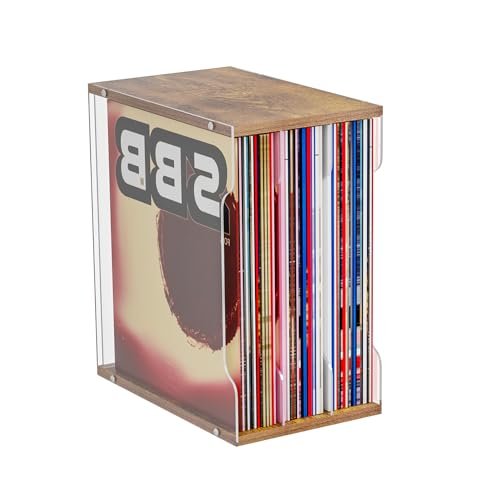 ihomecooker Suporte de disco de vinil que toca agora, suporte para discos, armazenamento de cubos de discos, grade de 3 quadrados, estilo rústico, vintage, comporta 60 discos (12 polegadas) (Equipamentos)