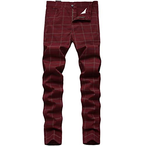 Keevoom Calça masculina skinny com frente lisa e confortável, lisa, casual, slim fit, calça chinos, Vinho tinto, 43 (Vinhos)