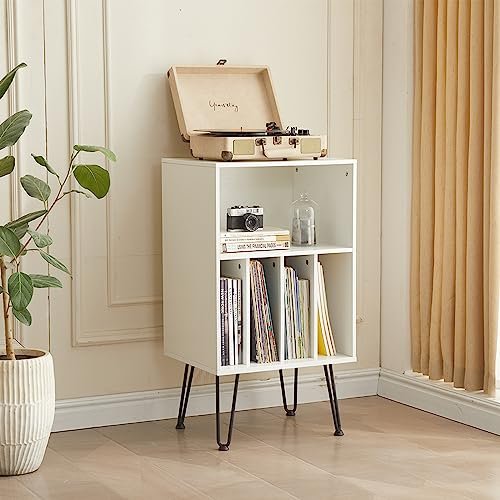 Leesingdo Suporte para toca-discos com armazenamento de vinil, armário de armazenamento de discos de vinil comporta até 150 álbuns, mesa de canto para toca-discos, suporte de toca-discos para sala de (Equipamentos)