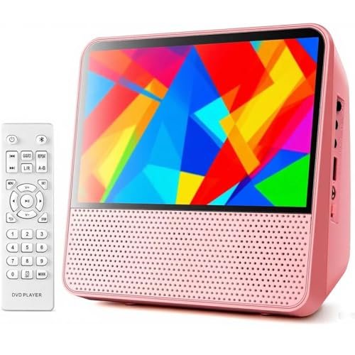 Leitor de DVD VCD CD Bluetooth Portátil De 9,8″ Com 7” Tela HD 1024×600, 4000 Mah Recarregável, Som Estéreo Hi-Fi, Sincronização de TV, Retomada de Reprodução (Rosa) (CDs)