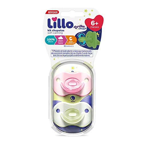 Lillo Kit De Chupeta 100% Silicone Calming Brilha No Escuro Bico Simétrico 6+ Meses – Rosa (Bebê)