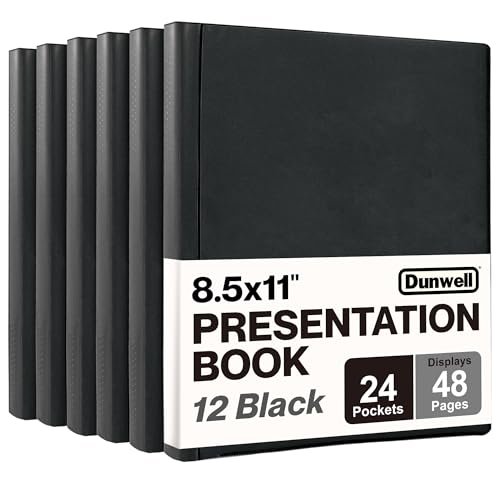 Livro de apresentação com mangas plásticas Dunwell, 24 bolsos, com mangas transparentes, exibe 48 páginas com inserções de tamanho de letras de 21,6 x 27,9 cm, protetor de lençol, Basic Black, 12 Pack (CDs)