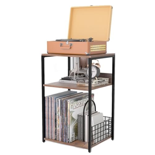 MayRecords Suporte para toca-discos de 3 camadas, armazenamento de mesa de metal para até 100 álbuns, mesas de toca-discos com prateleira de armazenamento de vinil, armazenamento de discos de vinil (Equipamentos)