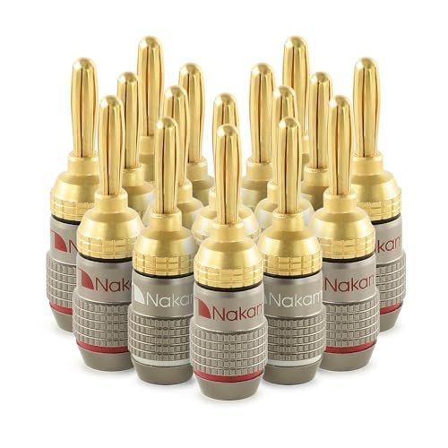 Nakamichi Série Excel FanLock Conector Banana 4 mm Banhado a Ouro 24k, Para Cabos 10–18 AWG, Alto-Falantes, Amplificadores, Hi-Fi, Estéreo e Home Theater, Conector Rápido, 16 Peças (8-Pares) (Equipamentos)