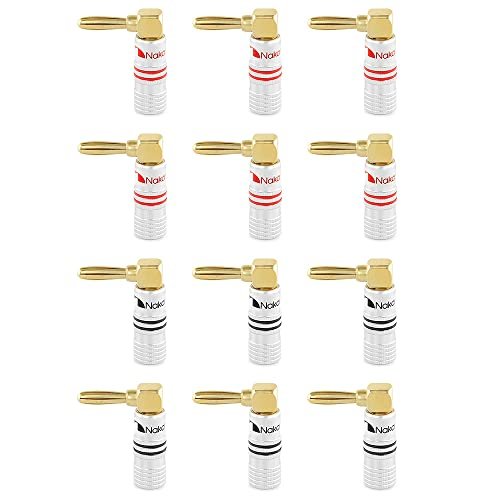 Nakamichi Série Excel Plugue Banana 90 Graus Ouro 24k 12-18 AWG 4mm para Caixa Som Amplificador Hi-Fi AV Home Theater Cabo Áudio Conector Parafuso, 12 Peças (6-Pares) (Equipamentos)