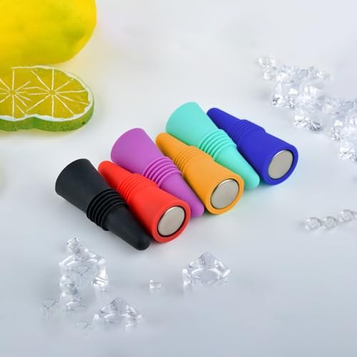 Pacote com 6 rolhas de vinho de silicone macio com tampas aderentes: seladores de garrafa de bebida ideais para manter o vinho e o champanhe frescos (Vinhos)