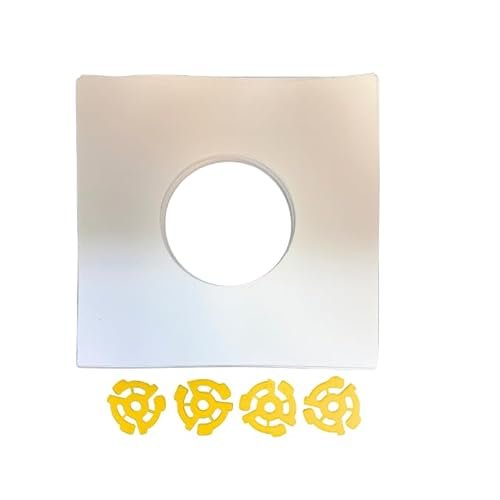 25 capas de papel branco para discos de vinil de 18 cm + 4 adaptadores amarelos de 45 RPM (Discos de Vinil)