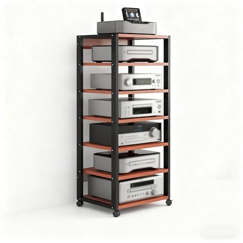 Armário AV vermelho elegante e suporte de vídeo para sala de estar, quarto – Unidade HiFi para jogos, alto-falantes, toca-discos e soluções de armazenamento de toca-discos (Equipamentos)