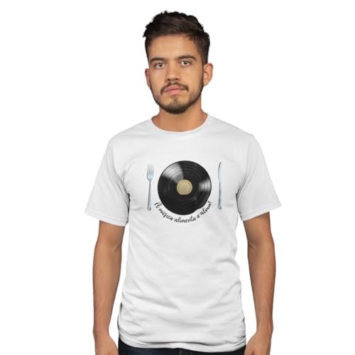 / Camiseta Masculina Disco Tamanho:M;Cor:Branco (Discos de Vinil)