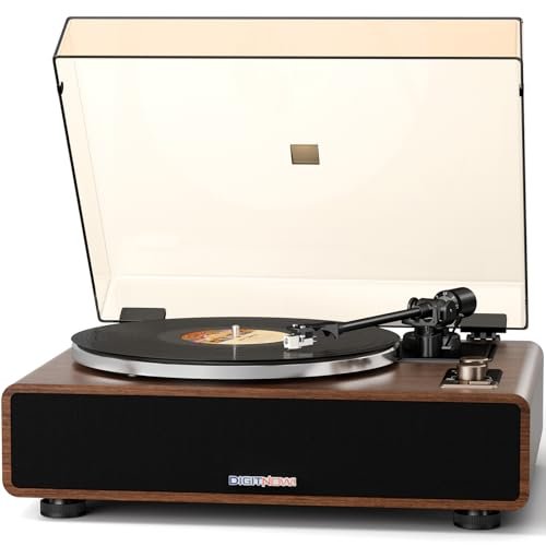 DIGITNOW Toca-discos de vinil com cartucho magnético, toca-discos de correia de alta fidelidade com alto-falantes embutidos, reprodução sem fio e funcionalidade auxiliar, desligamento automático (Equipamentos)