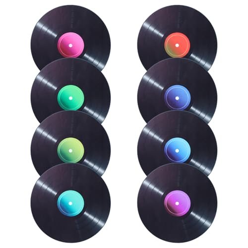 Pacote com 8 unidades de decoração de parede de disco de vinil em branco, disco de vinil falso de 24,4 cm, adesivos vintage, pôsteres de capa de álbum de CD, 70, 80, 90, rock, roll, decoração de sala (Discos de Vinil)