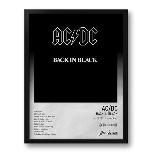 Quadro com Moldura Spotify Álbum Back In Black AC/DC – Tam. 33x43cm (Discos de Vinil)