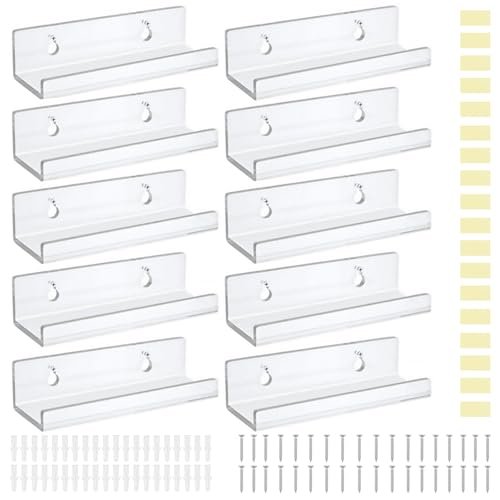 Suporte de parede para estante de disco de vinil com parafusos e fita, 10 peças, suporte de disco de acrílico flutuante transparente de 10 cm para armazenamento diário de livros Lp Cd, decoração de (Discos de Vinil)