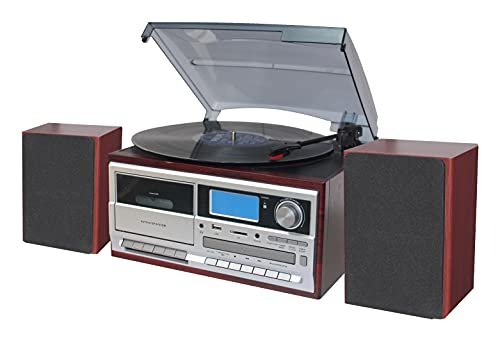 Toca-discos TechPlay ODC128BT de 3 velocidades com leitor de cassete/gravador, Cherry Wood (Equipamentos)