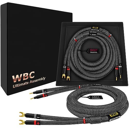 WORLDS BEST CABLES Cabo de alto-falante audiófilo HiFi extra premium 7 AWG – OFC ultra puro – Par de cabos para alto-falantes Eminence Gold Banana (x2) e Spade (x2) e revestimento de tweed de carbono (Equipamentos)