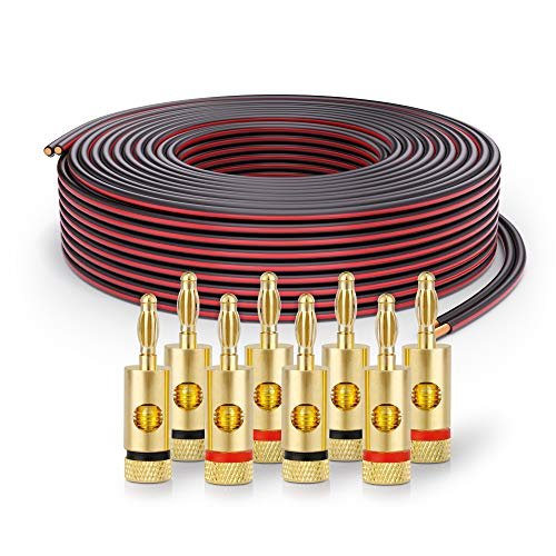 PureLink Cabo de alto-falante OFC 2 x 2,50 mm² (0,20 mm) 25 m preto conjunto de 8 plugues banana (Equipamentos)