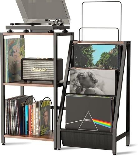 Qlearsoul Suporte de disco de vinil, mesa de toca-discos de 3 camadas com armazenamento esquerdo e direito para sala de estar e quarto (Equipamentos)