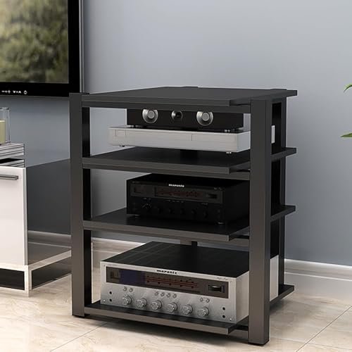 Rack de áudio AV de 3 níveis – suporte estéreo para armazenamento de mídia, suporte de dispositivo de entretenimento, toca-discos, organizador de DVD/CD para casa, escritório, teatro – preto (Equipamentos)