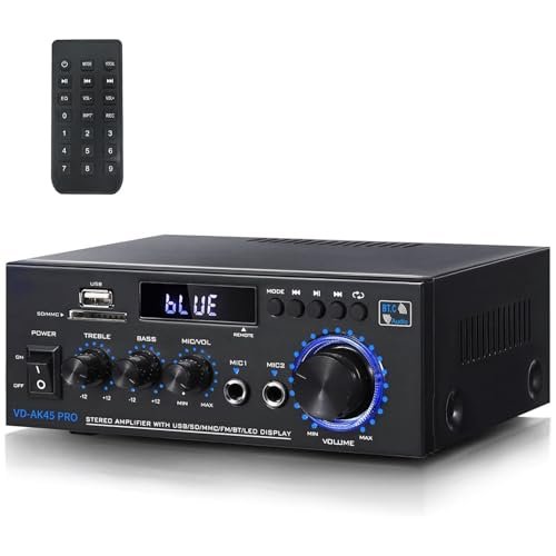 Receiver Amplificador de Som Bluetooth 5.0, AK-45 PRO, MAX 300W AV Receivers, Dupla Entrada de Microfone para Karaokê, Compatível com TV, Celular, PC e Tablet, com Entrada USB/SD/RCA/MIC/FM (Equipamentos)