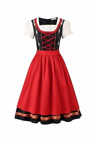 Regenboog Fantasia feminina Oktoberfest, vestido Dirndl bávaro com avental, roupa de empregada de cerveja, Vermelho, M (Cervejas)