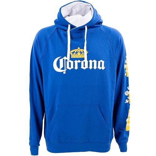 Ripple Junction Corona Moletom masculino com capuz e logotipo clássico da coroa e garrafa de cerveja Cerveza Graphics oficialmente licenciado, Azul royal, GG (Cervejas)