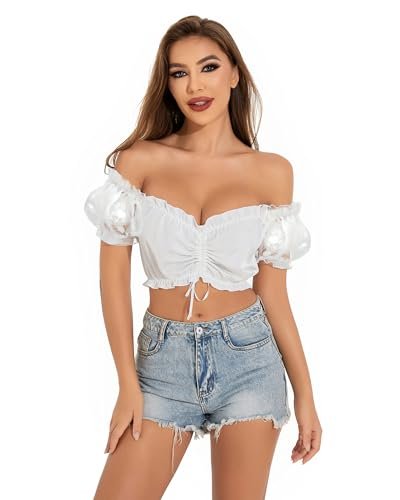 Stciqok Blusa feminina alemã Dirndl bávara Oktoberfest fantasia festival de cerveja jardim de cerveja manga curta camisas brancas Dirndl tops cropped (branco-8, 2GG) (Cervejas)