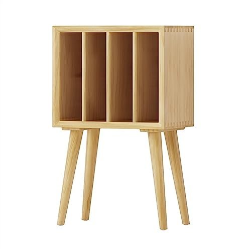 Suporte de DVD CD para toca-discos, suporte de mesa de armazenamento de discos de vinil com 4 armários, suporte de toca-discos retrô de pinheiro, mesa de cabeceira para quarto, sala de estar (Equipamentos)