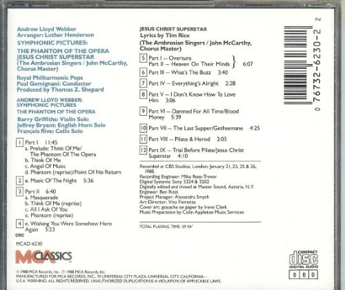 Symphonic Pictures: The phantom of the Opera & Jesus Christ: Superstar [Audio CD] Lloyd Webber, Andrew; Bryant, Jeffrey; Griffiths, Barry; Rive, Francois; Ambrosian Singers; Paul Gemignani and John McCarthy (CDs)