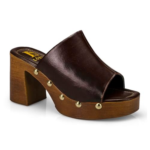 Tamanco Feminino Sandália Salto Alto Grosso Bloco Madeira 007-011 (Café, BR, Adulto, Numérico, 39) (Café)