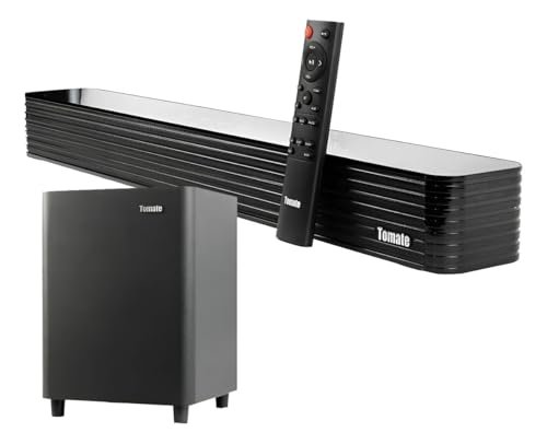 Tomate Soundbar 2.1 com Subwoofer Sem Fio, Sistema de Som com Controle Remoto, Preto (Equipamentos)