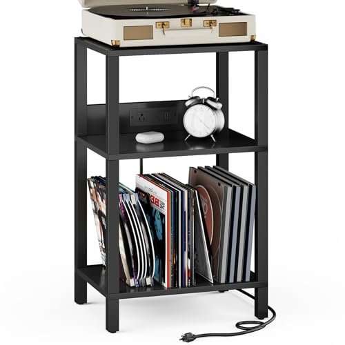 TUTOTAK Suporte Para Toca-Discos Com Capacidade Até 100 Álbuns, Mesa Discos, Estação De Carregamento Lateral 3 Níveis, Sala Estar, Quarto, Preto Tb01Bk076 (Equipamentos)