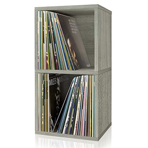 Way Basics Prateleira de suporte vintage para toca-discos 140 LP Records, London Grey (Equipamentos)