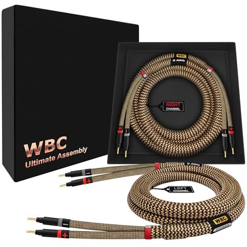 WORLDS BEST CABLES Cabo de alto-falante audiófilo HiFi premium de 20 pés – 9 AWG – OFC ultra puro – par com plugues banana dourado Eminence e jaqueta de tweed TnBrwn (Equipamentos)