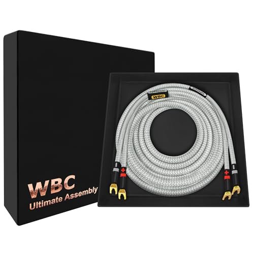 WORLDS BEST CABLES Ultimate de 20 pés – 8 AWG – OFC ultra-puro – Cabo de alto-falante audiófilo HiFi premium para canal central com plugues espada Eminence e jaqueta de tweed prata (Equipamentos)